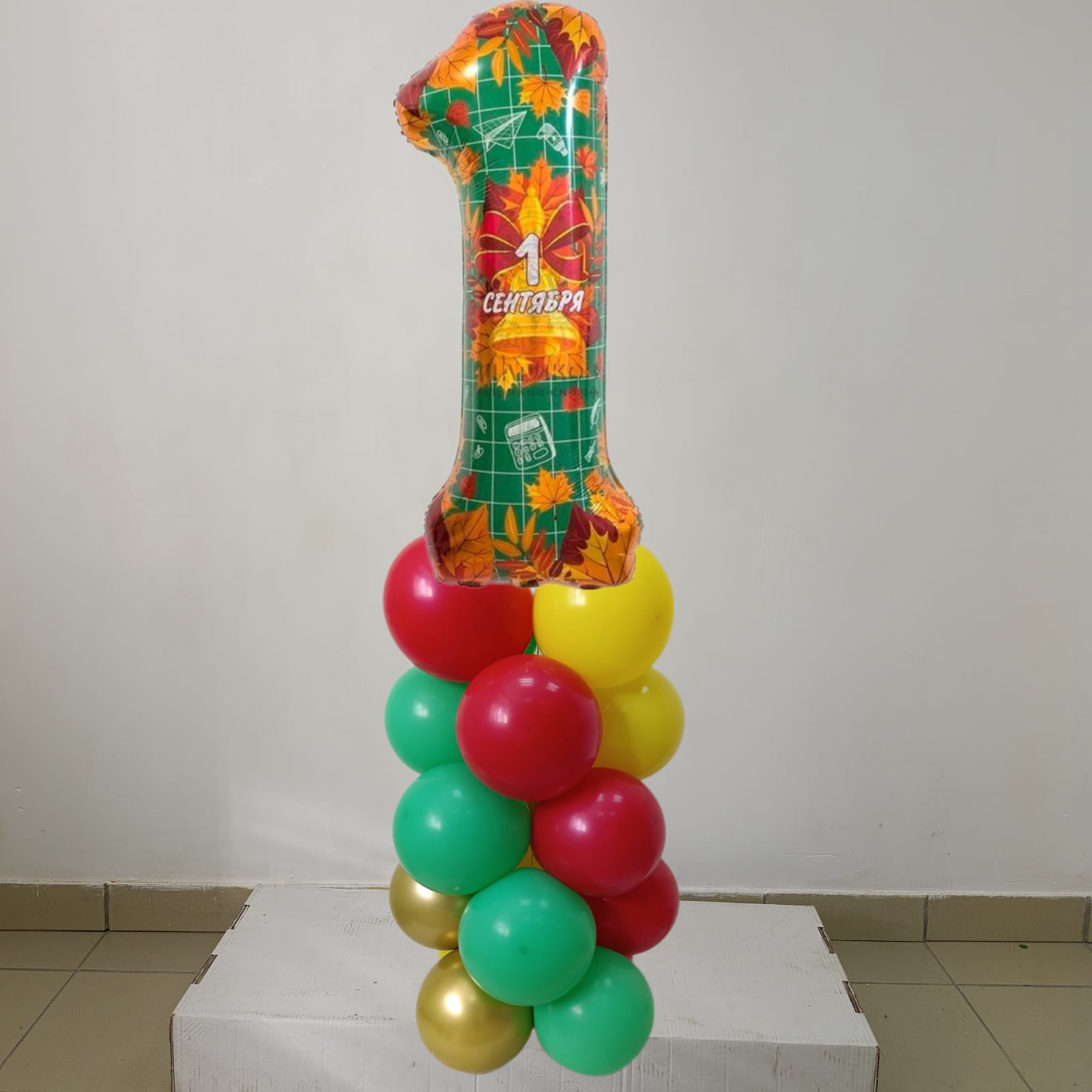 Стойка из шаров 1 сентября с шаром 1 сентября цифра листья в ассортименте высота 1.6 м