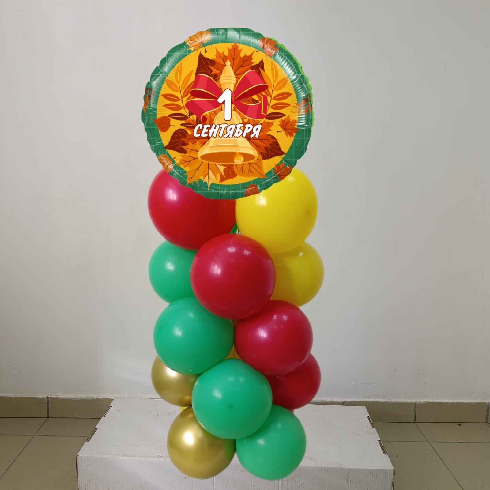 Стойка из шаров 1 сентября с шаром 1 сентября листья в ассортименте высота 1.1 м