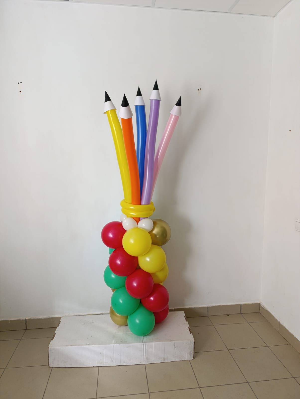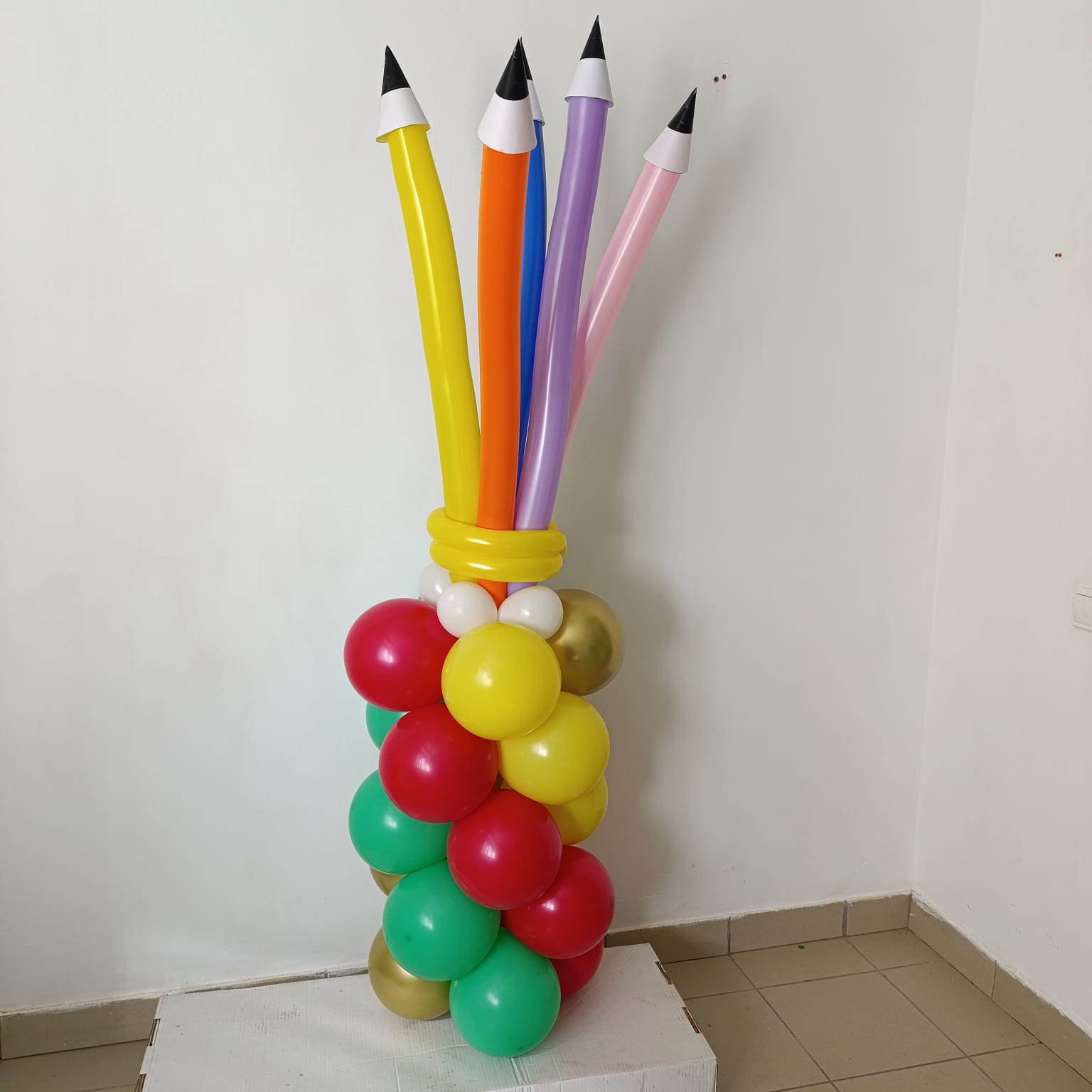 Стойка из шаров 1 сентября с шаром Карандашница 5 карандашей в ассортименте высота 1.7 м